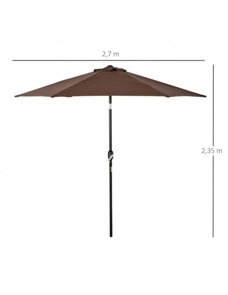 Parasol med tilt i metal og polyester H235 x Ø270 cm - Brun
