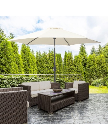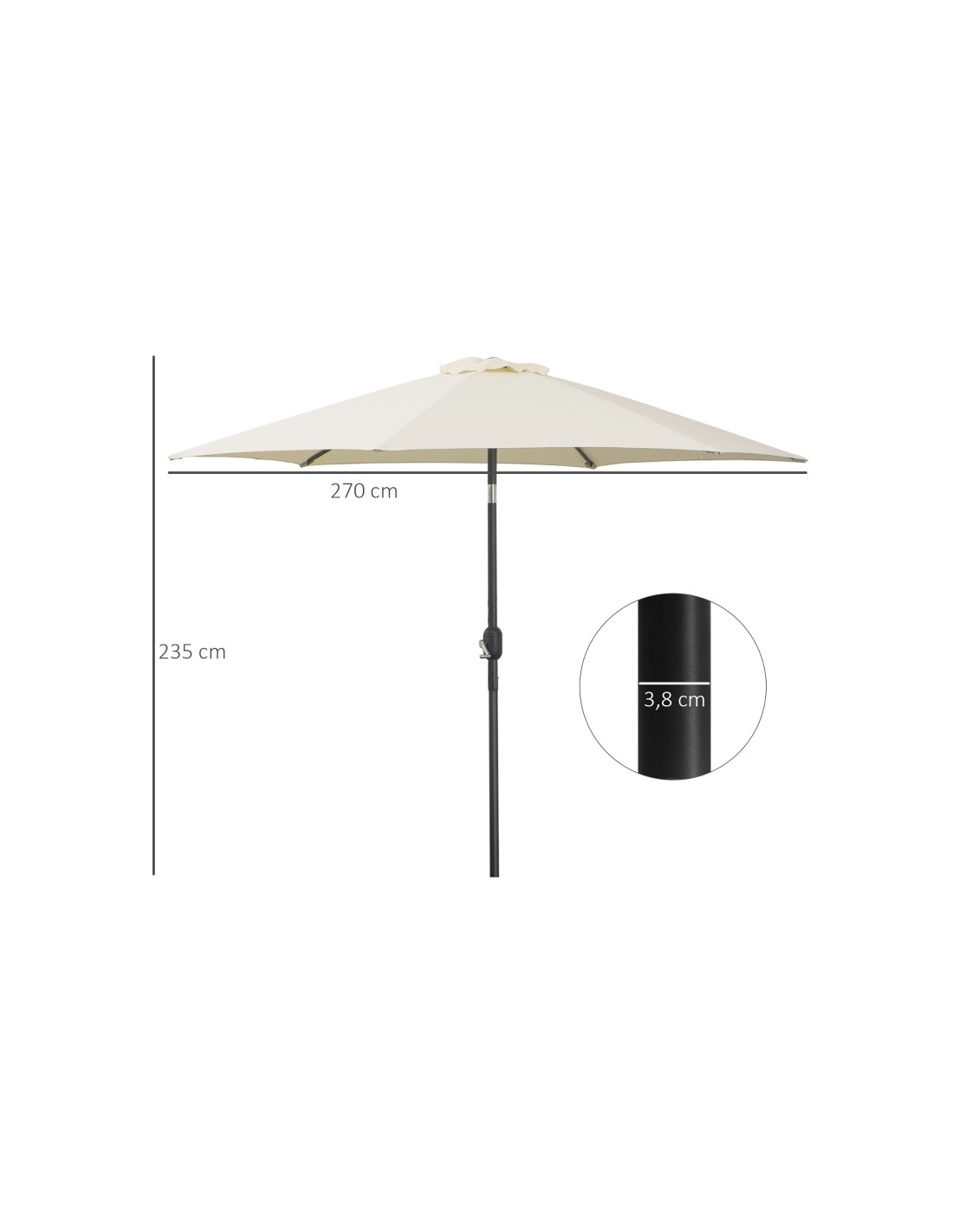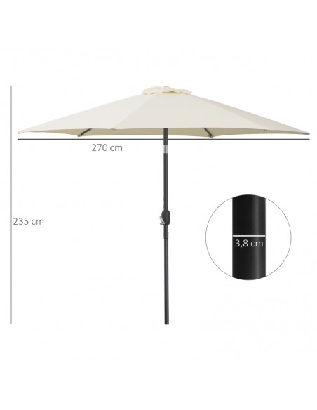 Parasol med tilt i metal og polyester H235 x Ø270 cm - Beige