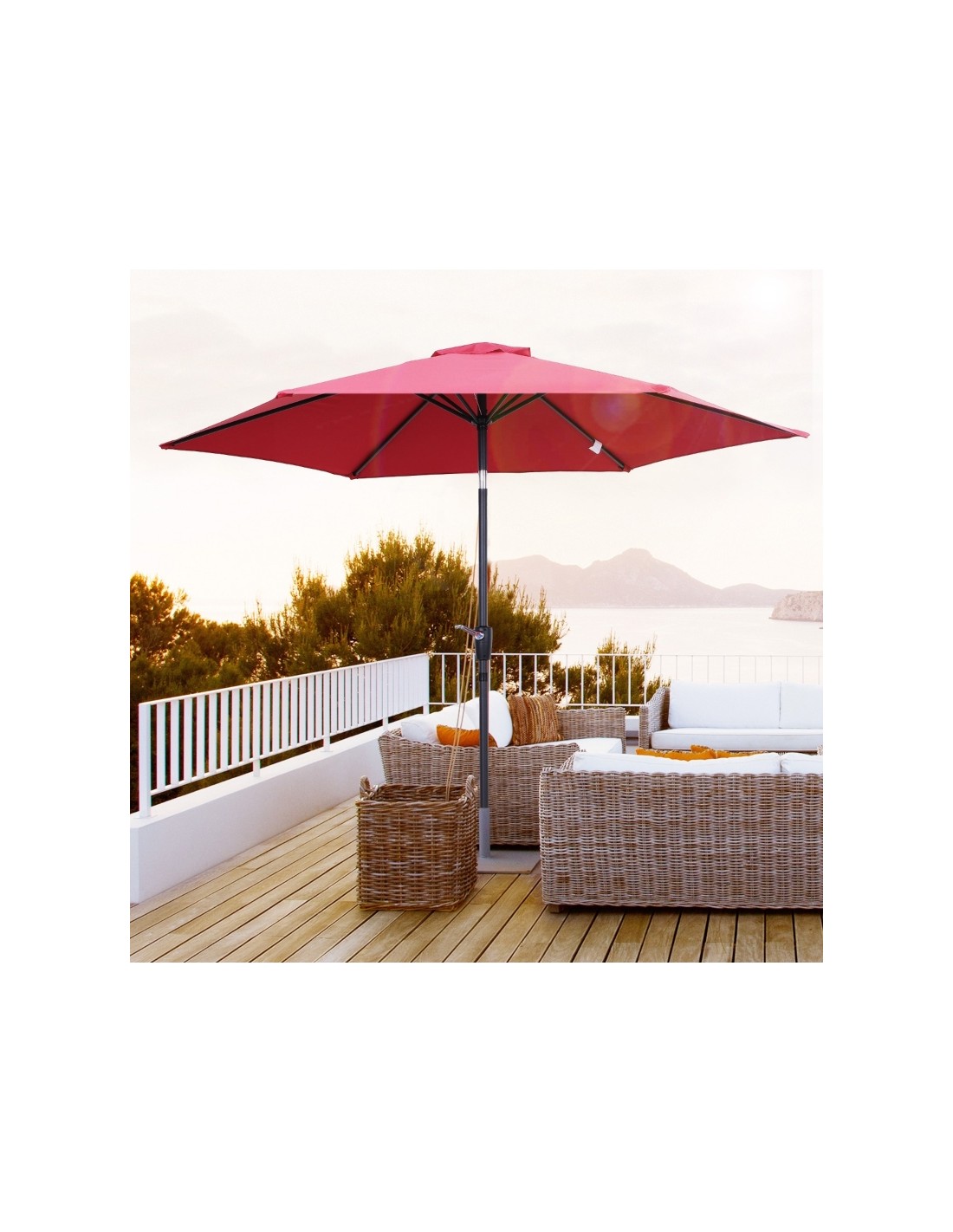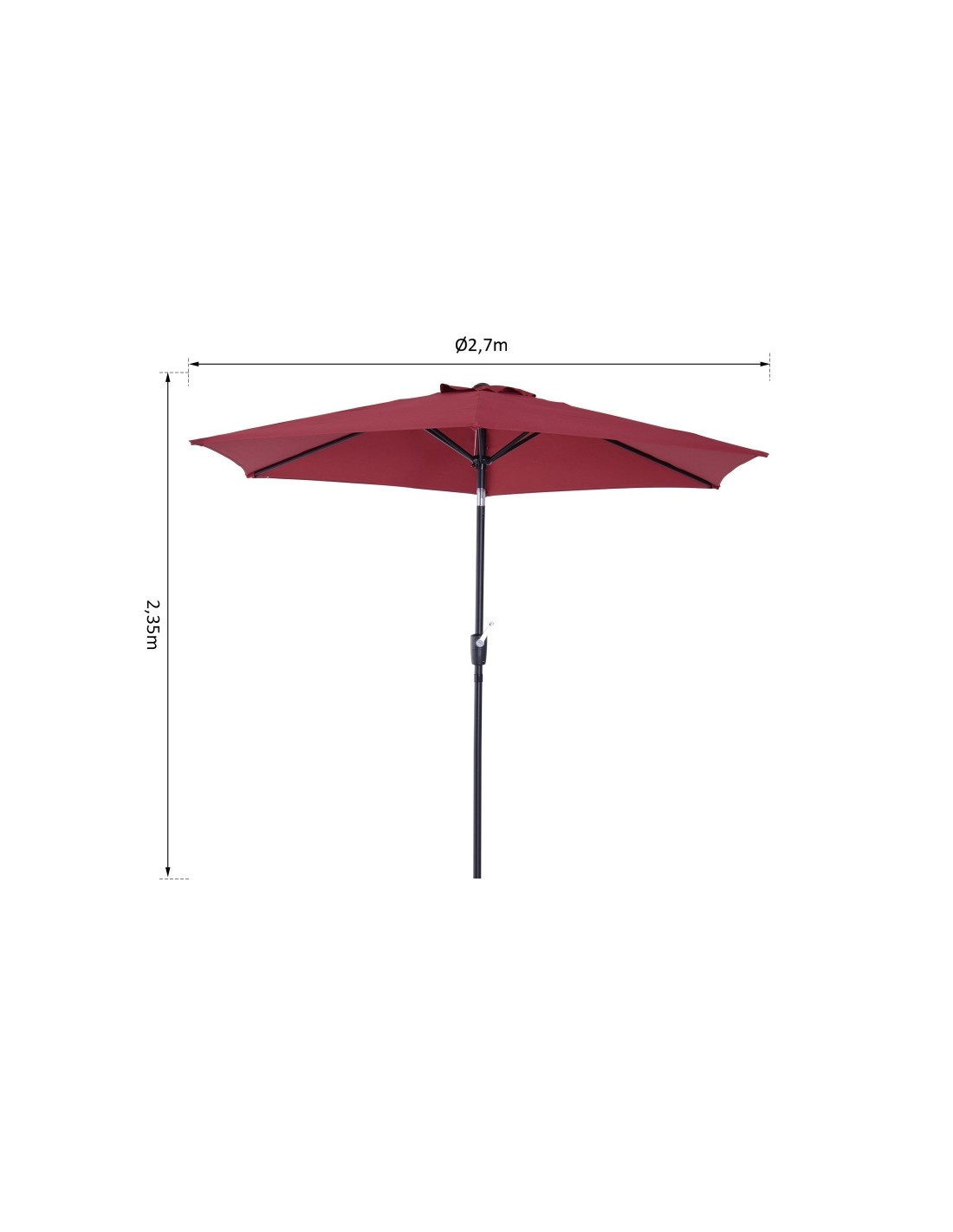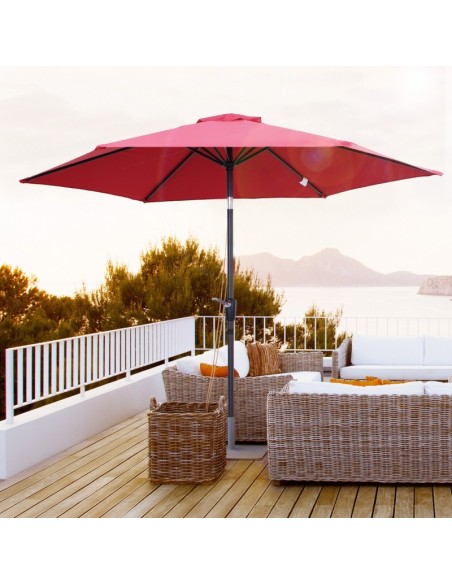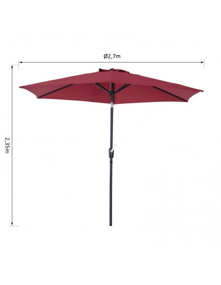 Parasol med tilt i metal og polyester H235 x Ø270 cm - Rød