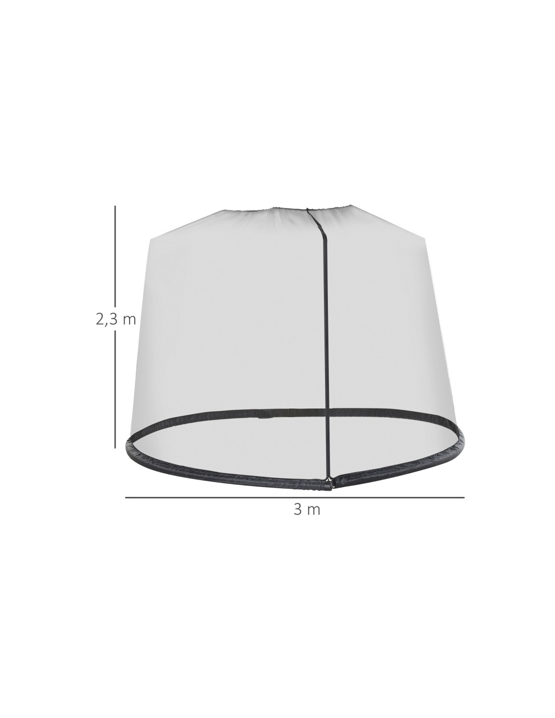 Myggenet til parasol. Myggenettet måler 300 cm i diameter og 230 cm i højden.