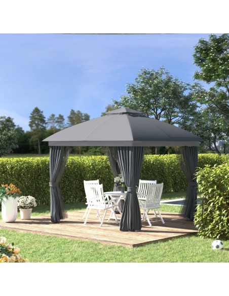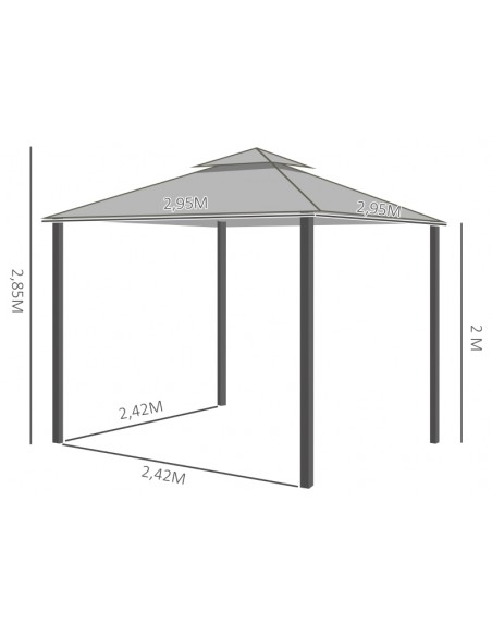 Havepavillon i aluminium og polyester 2,95 x 2,95 m - Grå