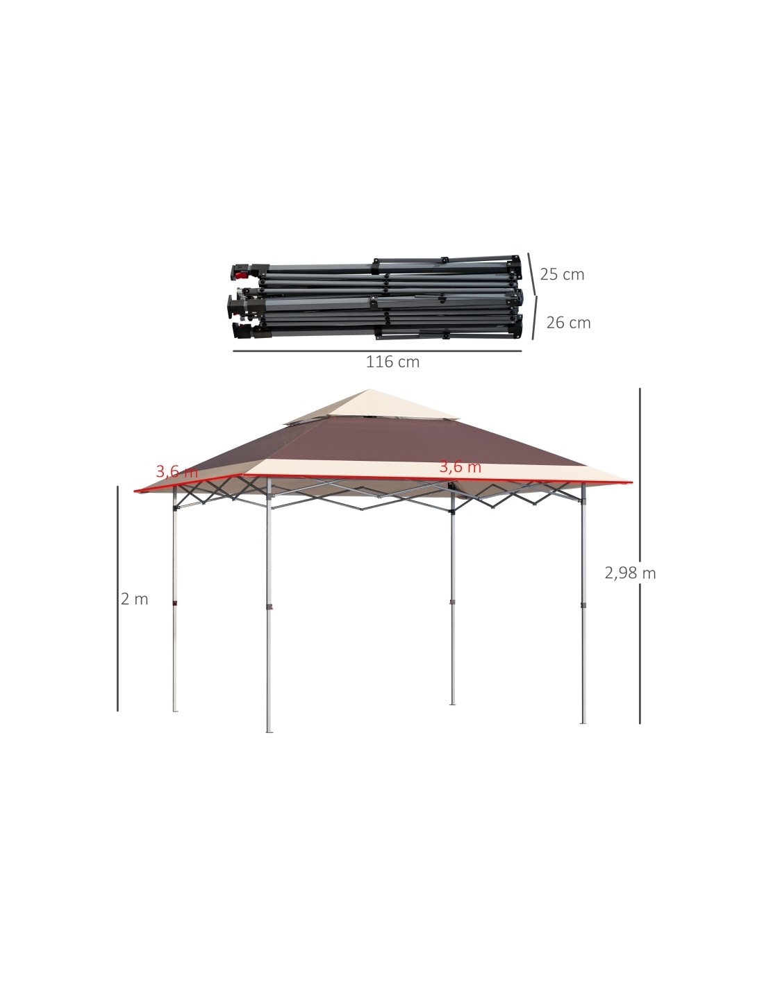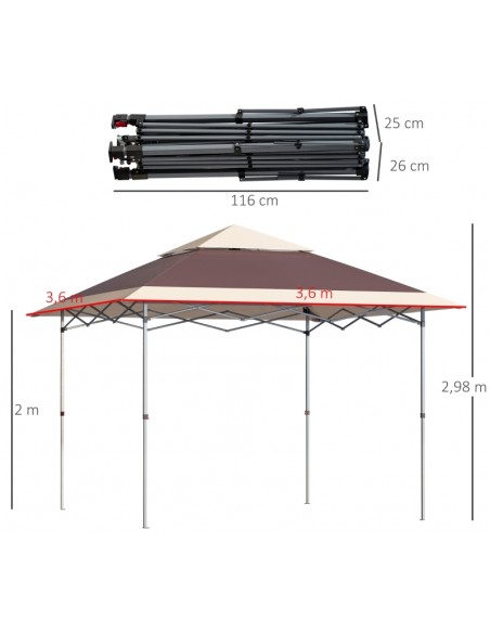 Transportabel havepavillon i stål og polyester 3,6 x 3,6 m - Brun