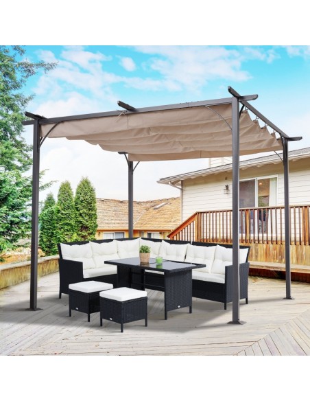 Havepavillon med skydetag i stål og polyester 3 x 3 m - Sort/Beige