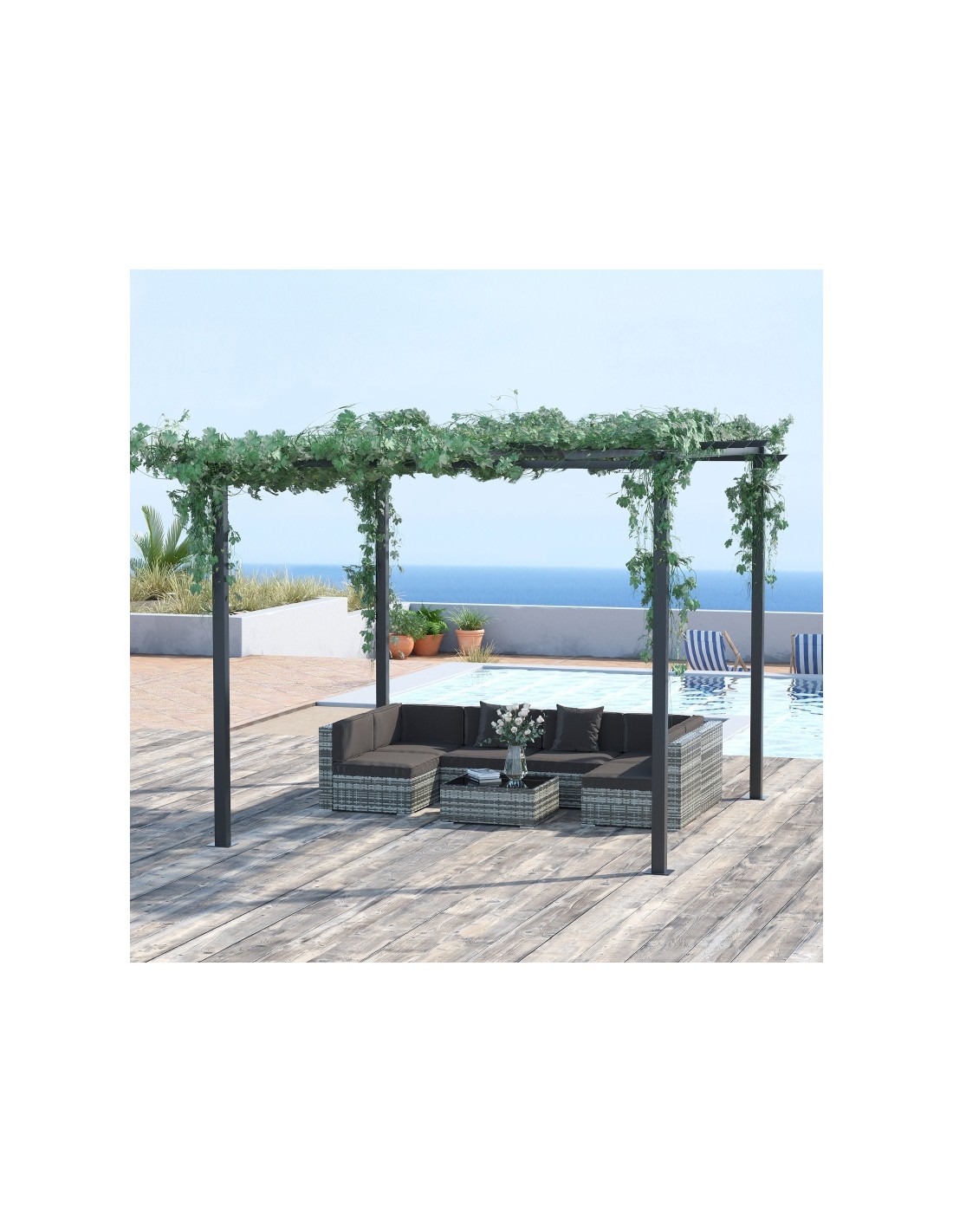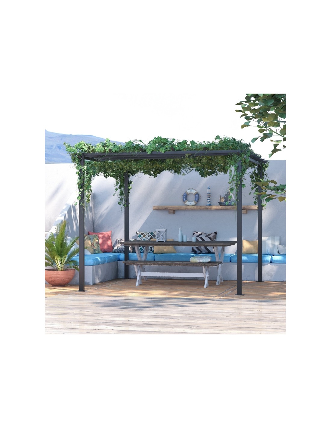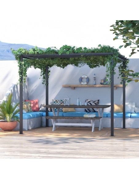 Moderne havepavillon udført i et design af metal. En smuk havepavillon til hygge i haven eller på terrassen. Pavillonen måler 3 x 3 m i bredde og dybde og 2,3 m i højden med indgangshøjde på 2 m.
