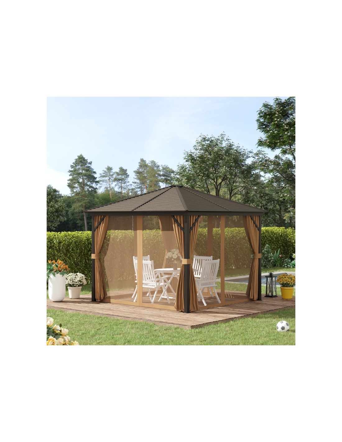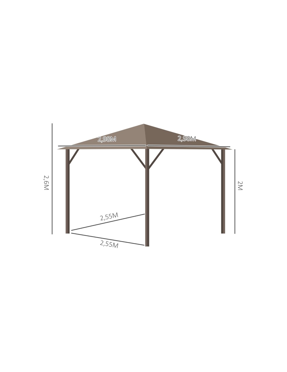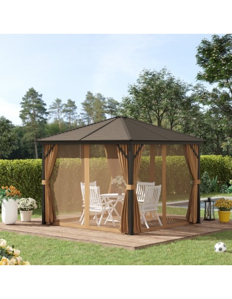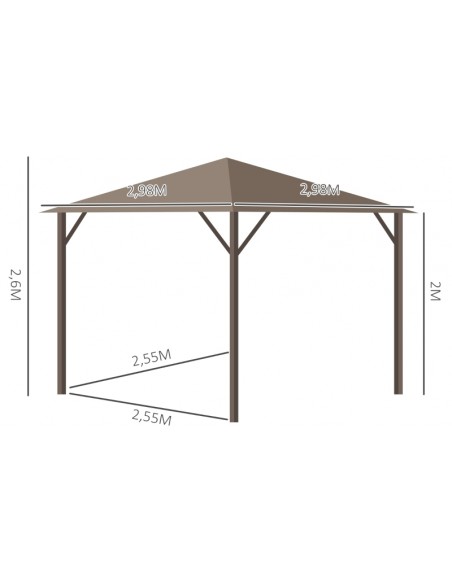 Havepavillon i aluminium og polyester 2,98 x 2,98 m - Brun