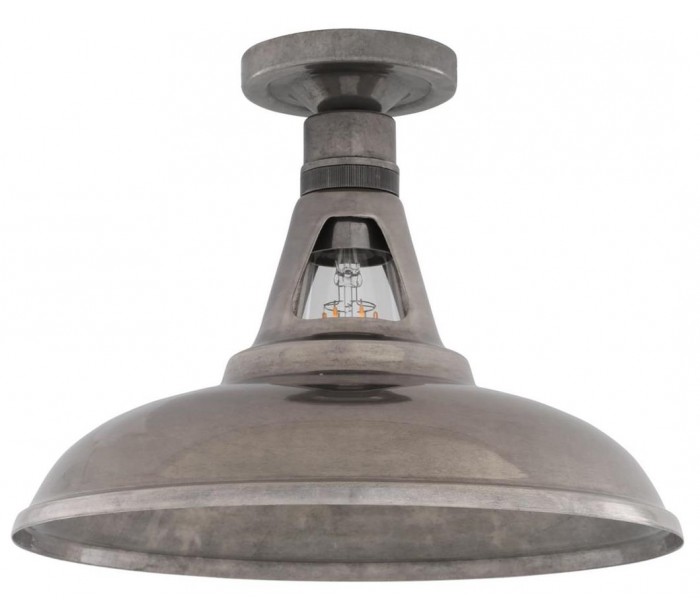 Geneva plafond i et industrielt design, fremstillet i antik sølvlakeret messing. Lampen måler 30,5 cm i diameter og anvender 1 x E27 lyskilde.