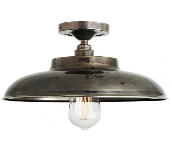 Tefal plafond i et industrielt design, fremstillet i antik sølvlakeret messing. Lampen måler 32 cm i diameter og anvender 1 x E27 lyskilde.