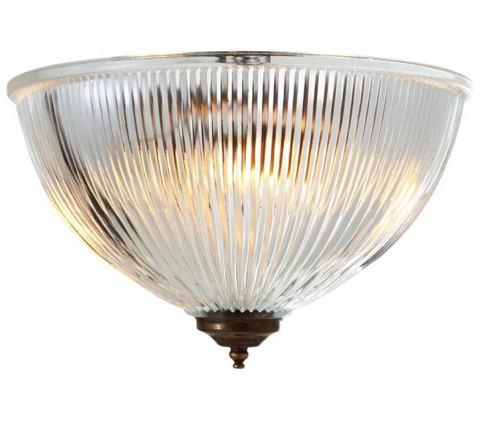 Moroni plafond i et moderne design, fremstillet i antik messing og med skærm i glas. Lampen måler 30 cm i diameter og anvender 2 x E27 lyskilder.