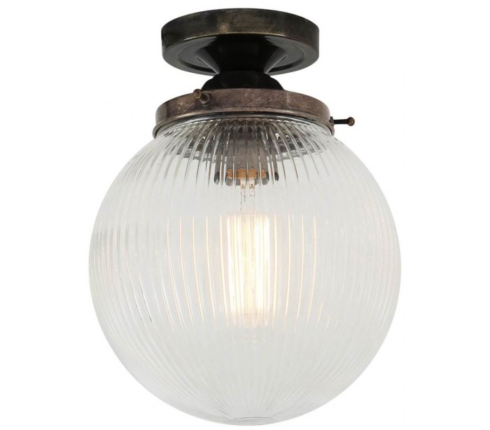 Stanley kugleplafond i et moderne design, fremstillet i antik sølvlakeret messing og med skærm i glas. Lampen måler 20 cm i diameter og anvender 1 x E27 lyskilde.