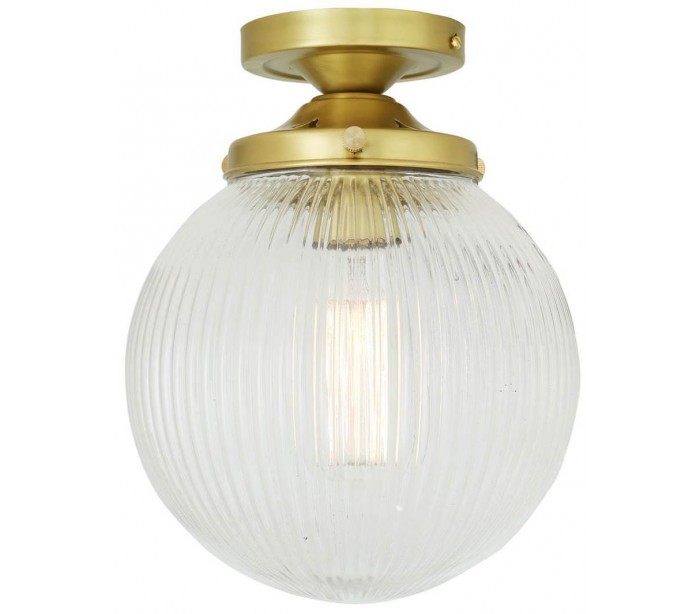 Stanley kugleplafond i et moderne design, fremstillet i satineret messing og med skærm i glas. Lampen måler 20 cm i diameter og anvender 1 x E27 lyskilde.