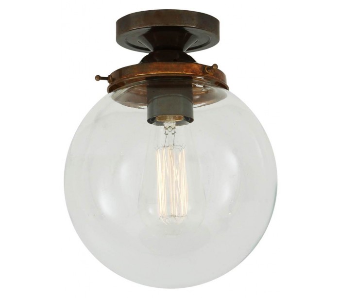 Riad kugleplafond i et moderne design, fremstillet i antik messing og med skærm i glas. Lampen måler 20 cm i diameter og anvender 1 x E27 lyskilde.
