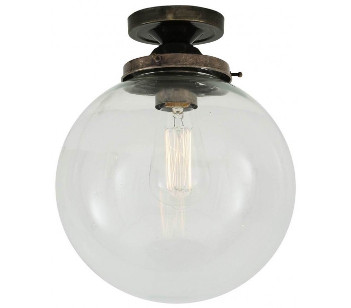 Riad kugleplafond i et moderne design, fremstillet i antik sølvlakeret messing og med skærm i glas. Lampen måler 25 cm i diameter og anvender 1 x E27 lyskilde.