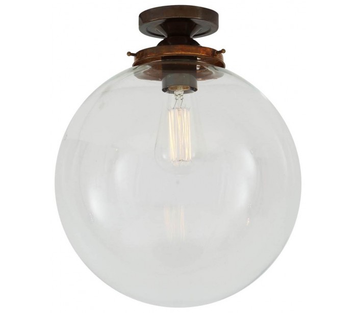 Riad kugleplafond i et moderne design, fremstillet i antik messing og med skærm i glas. Lampen måler 30 cm i diameter og anvender 1 x E27 lyskilde.