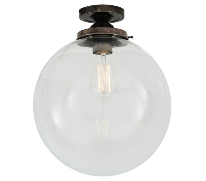 Riad kugleplafond i et moderne design, fremstillet i antik sølvlakeret messing og med skærm i glas. Lampen måler 30 cm i diameter og anvender 1 x E27 lyskilde.