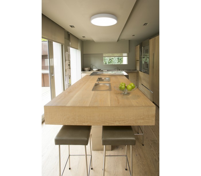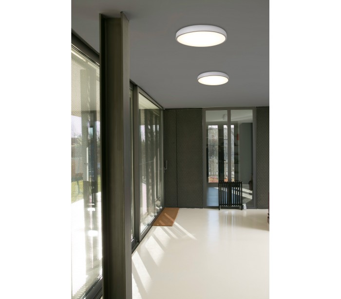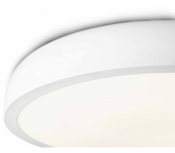 Plafond i et moderne design, fremstillet i hvidlakeret metal og med skærm i akryl. Plafonden er med indbygget 36W LED lyskilde (Inkl.) og måler 55 cm i diameter.