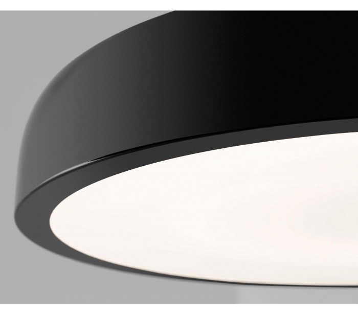 Plafond i et moderne design, fremstillet i sortlakeret metal og med skærm i akryl. Plafonden er med indbygget 36W LED lyskilde (Inkl.) og måler 55 cm i diameter.