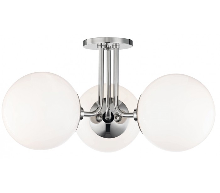 Stella Plafond i stål og opalglas Ø46,5 cm 3 x E27 - Poleret nikkel/Opalhvid
