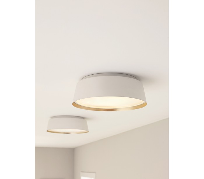Asher plafond i et moderne design, fremstillet i hvidlakeret stål. Lampen måler 36,8 cm i diameter og anvender 3 x E14 lyskilder (Ekskl.).
