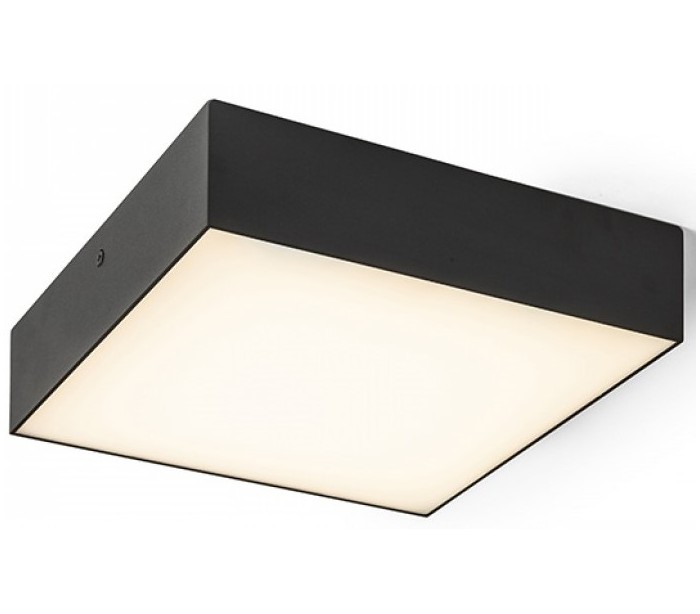 Plafond udført i et moderne stilrent design af sortlakeret metal, og med skærm i hvid polycarbonat. Plafonden måler 22 x 22 cm i bredde og dybde og er udstyret med LED lyskilde på 20W.