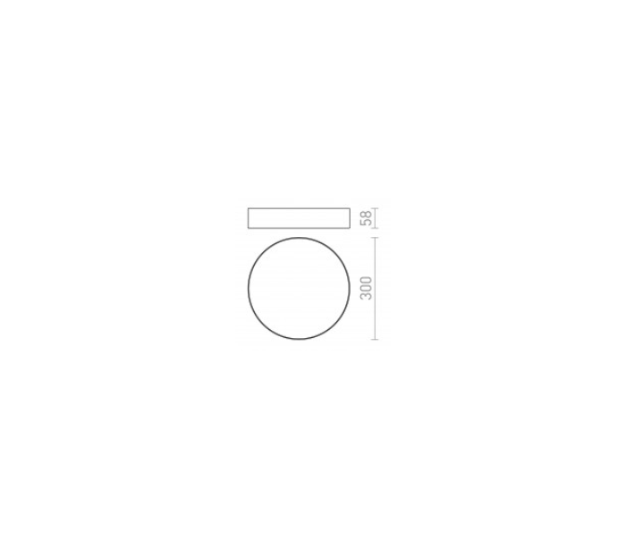 Plafond udført i et moderne stilrent design af sortlakeret metal, og med skærm i hvid polycarbonat. Plafonden måler 30 cm i diameter og er udstyret med LED lyskilde på 30W.