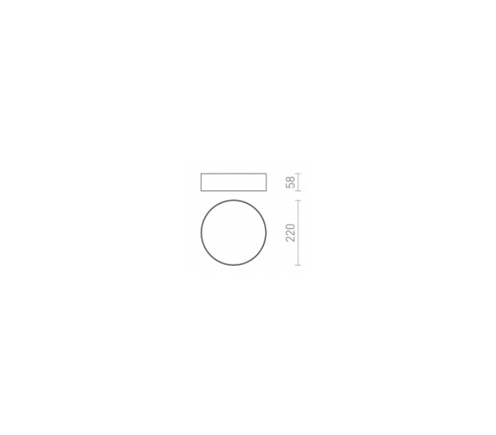 Plafond udført i et moderne stilrent design af sortlakeret metal, og med skærm i hvid polycarbonat. Plafonden måler 22 cm i diameter og er udstyret med LED lyskilde på 20W.