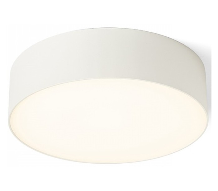 Plafond udført i et moderne stilrent design af hvidlakeret metal, og med skærm i hvid polycarbonat. Plafonden måler 22 cm i diameter og er udstyret med LED lyskilde på 20W.