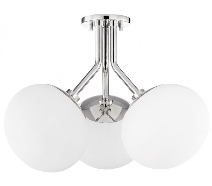 Estee Plafond i stål og opalglas Ø48,5 cm 3 x E27 - Poleret nikkel/Opalhvid