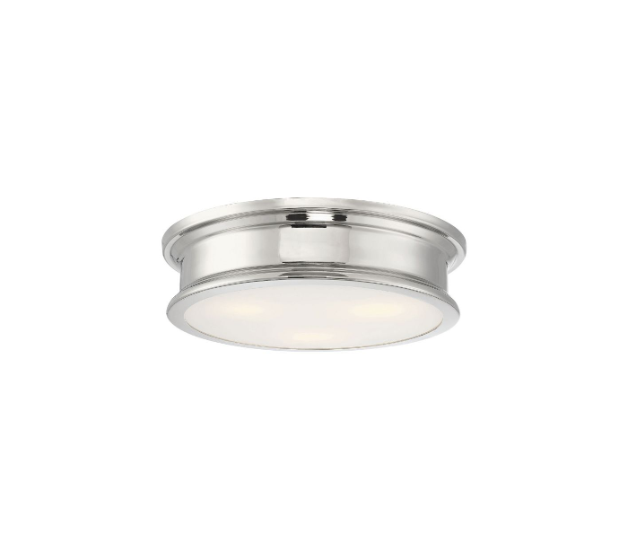 Watkins 3 plafond udført i et design af poleret nikkel lakeret stål og med skærm i hvid opalglas. Lampen er fra amerikanske Savoy House og anvender 3 x E27 lyskilder og måler 41 cm i diameter og 10 cm i højden.