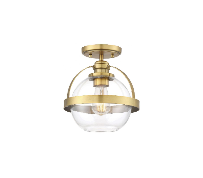 Pendleton 1 plafond udført i et design af varm messinglakeret stål og klart glas. Lampen er fra amerikanske Savoy House og anvender 1 x E27 lyskilde og måler 24 cm i diameter og 25 cm i højden.