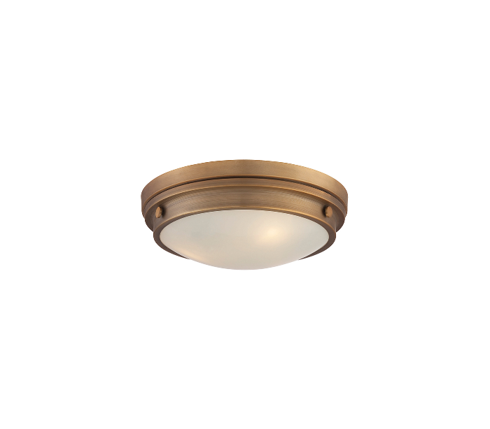 Lucerne 2 plafond udført i et design af varm messinglakeret stål og hvid opalglas. Lampen er fra amerikanske Savoy House og anvender 3 x E27 lyskilder og måler 38 cm i diameter og 12 cm i højden.
