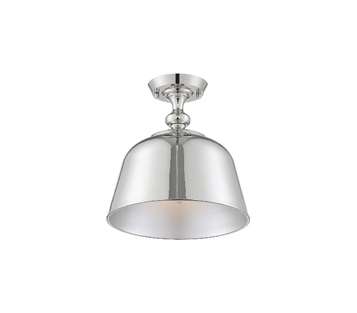 Berg 1 plafond udført i et design af poleret nikkel lakeret stål. Lampen er fra amerikanske Savoy House og anvender 1 x E27 lyskilde og måler 30 cm i diameter og 30 cm i højden.