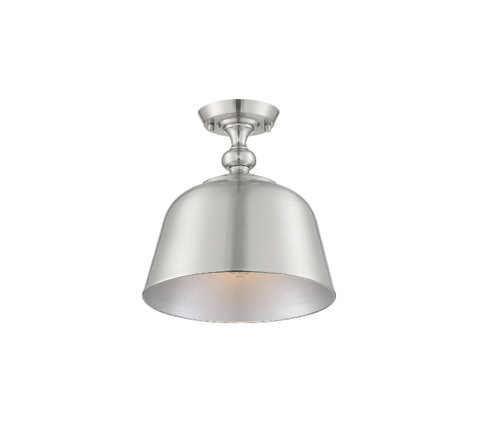Berg 1 plafond udført i et design af satineret nikkel lakeret stål. Lampen er fra amerikanske Savoy House og anvender 1 x E27 lyskilde og måler 30 cm i diameter og 30 cm i højden.