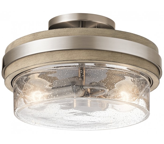 Grand Bank Plafond i stål og træ Ø30,5 cm 2 x E27 - Aldret blik/Antik grå/Klar med dråbeeffekt