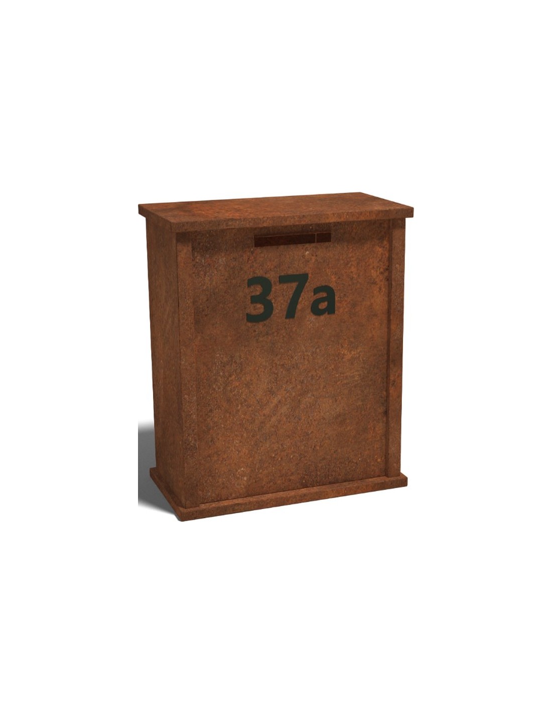 Postkassen er lavet af Corten-A stålplade af høj kvalitet, der har den unikke egenskab, at den danner et meget tæt oxidlag (rustlag), som er umuligt at ruste igennem. På grund af det tætte oxidlag er det dybere materiale afskærmet for ilt, så oxidationen bremses betydeligt, mens korrosionen fortsætter. Postkassen i cortenstål leveres urustet, i den grå metalfarve. Det brune/orange rustlag dannes inden for få uger til et par måneder og ingen behandling er påkrævet.