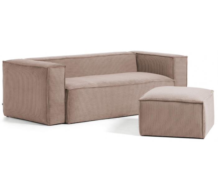 Puf til sofa, udført i et design fra LaForma. Puffen er fremstillet i støvet pink ripcurl velour og måler 90 x 70 cm i bredde og dybde.