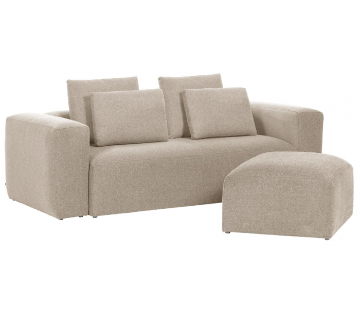 Puf til sofa, udført i et design fra LaForma. Puffen er fremstillet i beige polyester og akrylfibre og måler 90 x 70 cm i bredde og dybde.