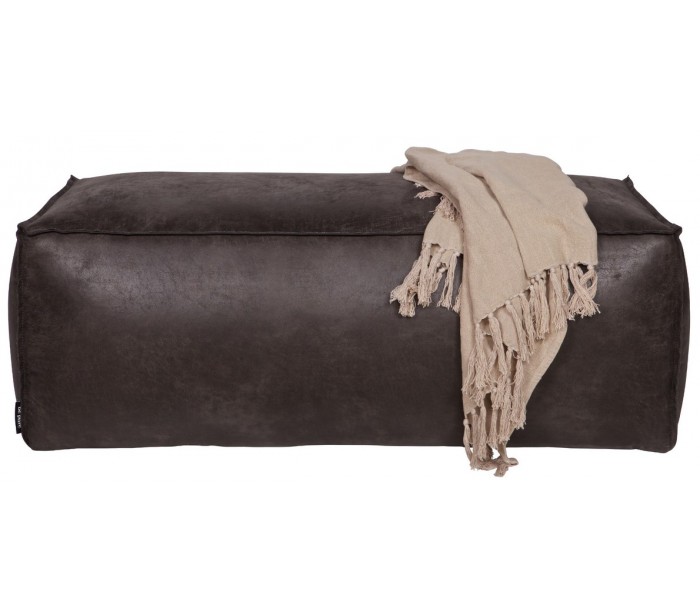 Skammel i et moderne design, fremstillet i læder i vintage sort og med ben i træ. Skamlen måler 43 cm i højden og 120 x 60 cm i bredde og dybde.