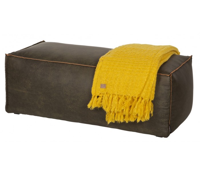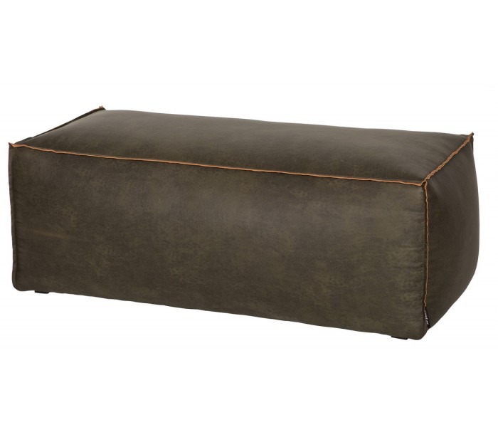 Skammel i et moderne design, fremstillet i læder i vintage armygrøn og med ben i træ. Skamlen måler 43 cm i højden og 120 x 60 cm i bredde og dybde.
