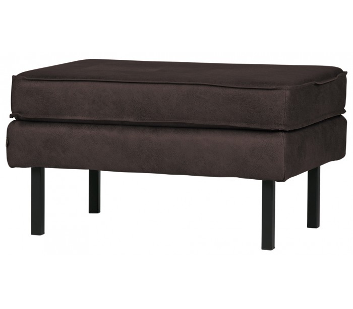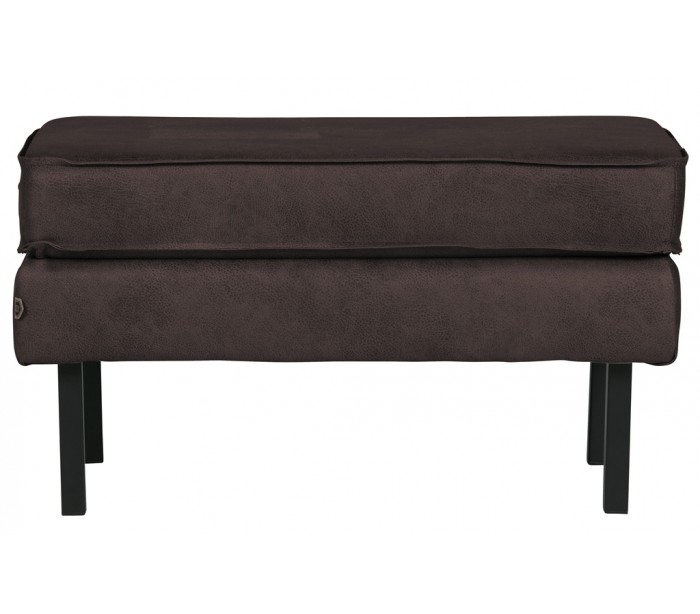 Moderne skammel i et design fremstillet i vintage sort læder og med ben i sortlakeret metal. Skamlen måler 84 x 54 cm i bredde og dybde, og 45 cm i højden. Skamlen er polstret med højkvalitets skum.