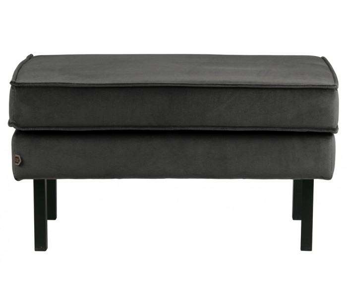 Moderne skammel i et design fremstillet i antracitfarvet velour og med ben i sortlakeret metal. Skamlen måler 84 x 54 cm i bredde og dybde, og 45 cm i højden. Skamlen er polstret med højkvalitets skum.