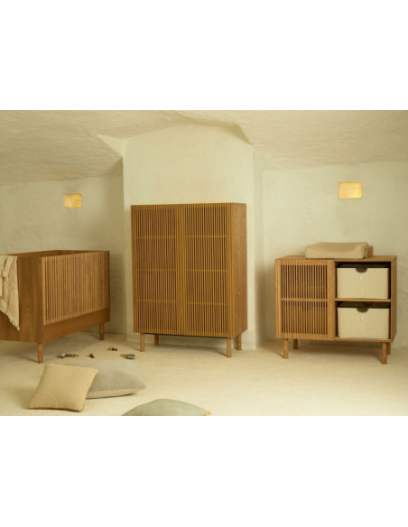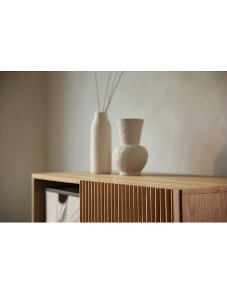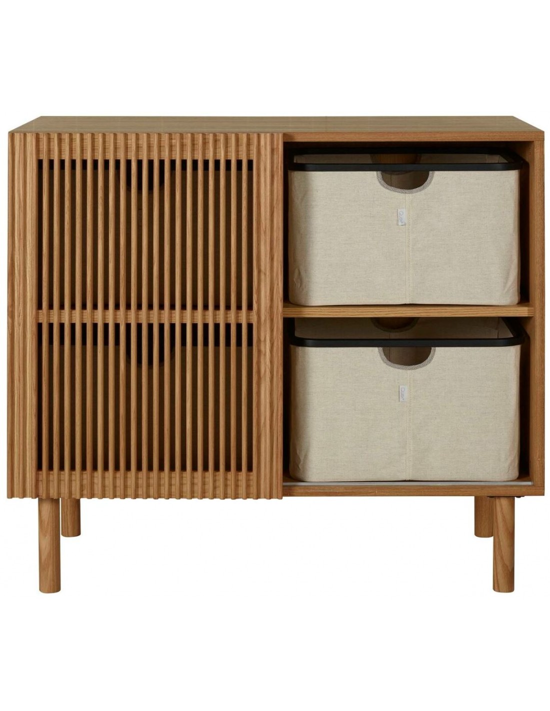 HAI NO KI Kommode med skydelåge og 2 kurve fra Belgiske Quax, udført i et moderne design og fremstillet i lækre materialer. Kommoden måler 104 x 56 cm og 90 cm i højden. Kurvene måler 45 x 45 x H28 cm.