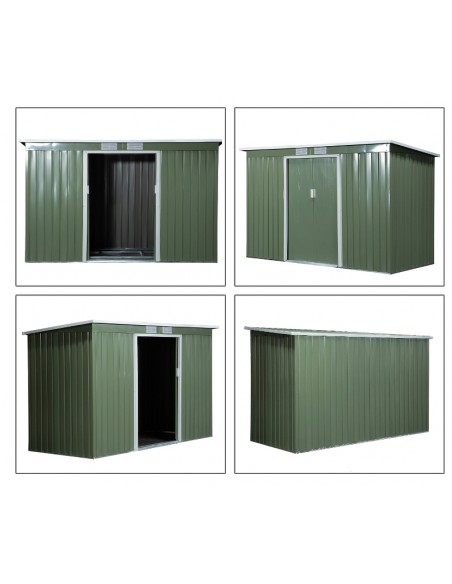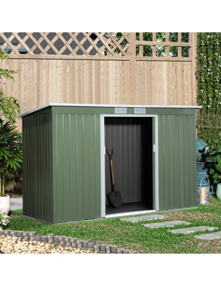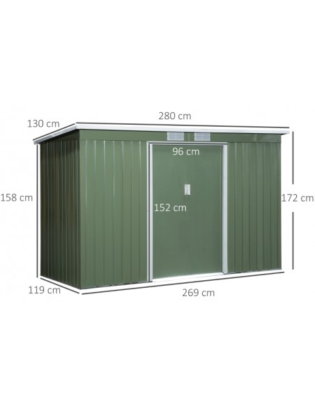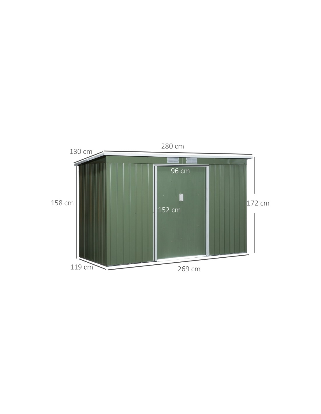 Redskabsskur i stål H158 - 172 x B280 x D130 cm - Grøn