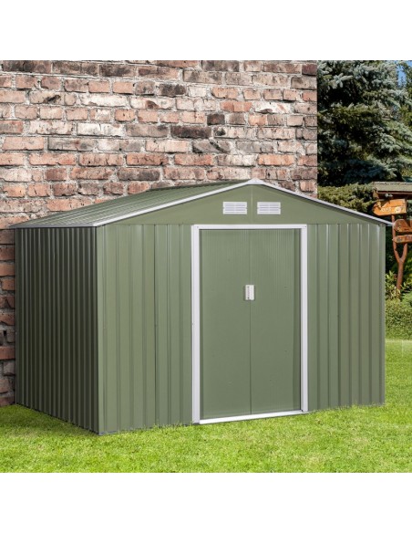 Redskabsskur i stål H192 x B277 x D195 cm - Grøn