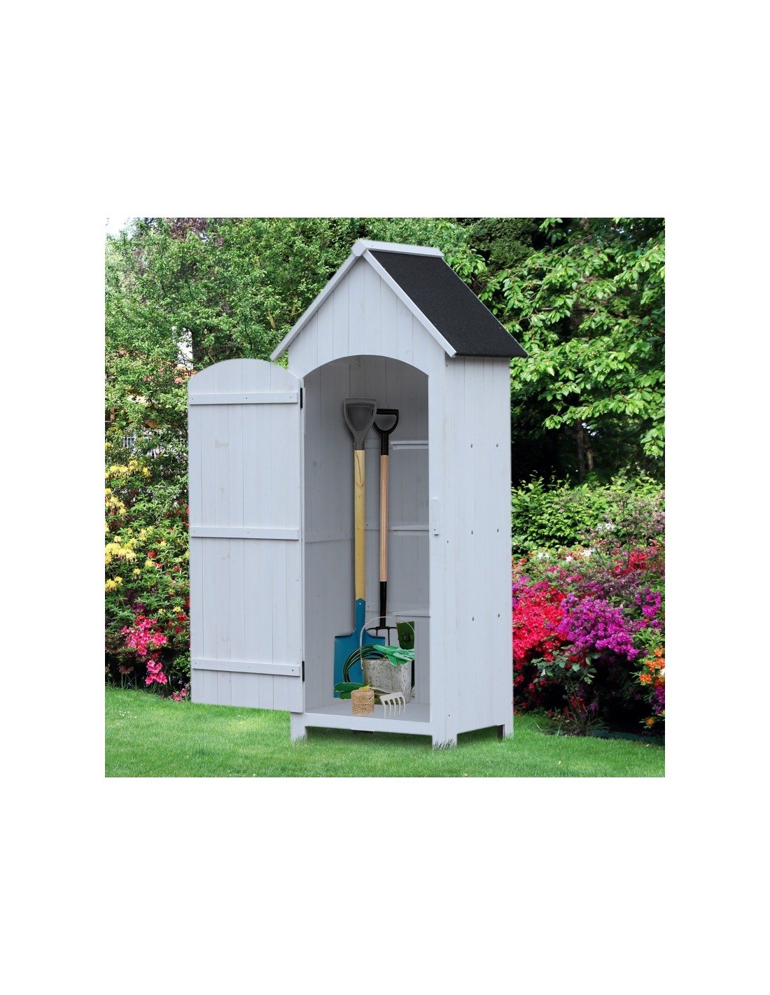 Redskabsskur i træ og tagpap H179,5 x B77,5 x D54,2 cm - Antik hvid/Sort