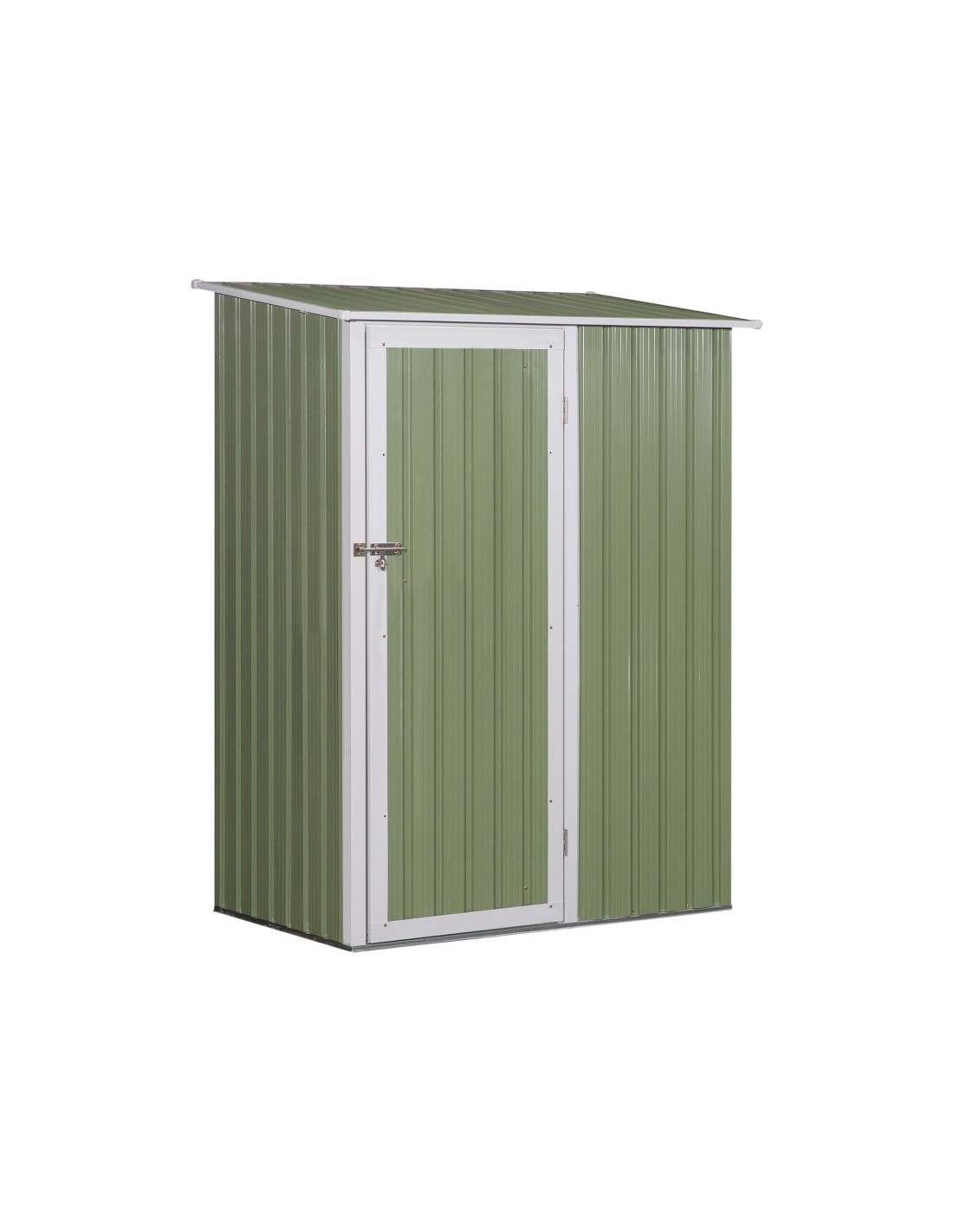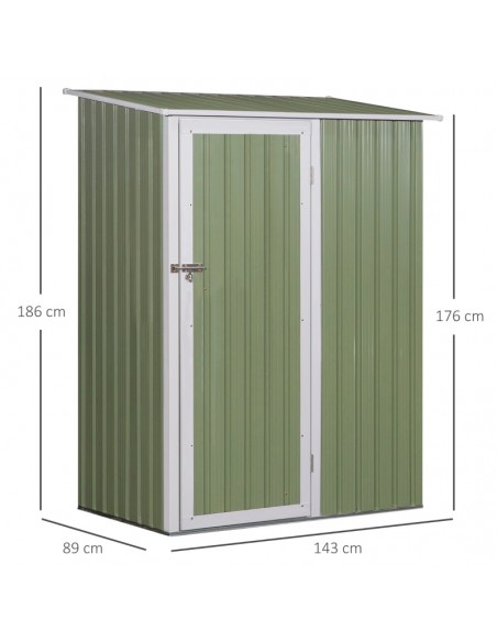 Redskabsskur udført i et design af forzinket stål. Redskabsskuret måler 176 - 186 cm i højden og 143 x 89 cm i bredde og dybde.