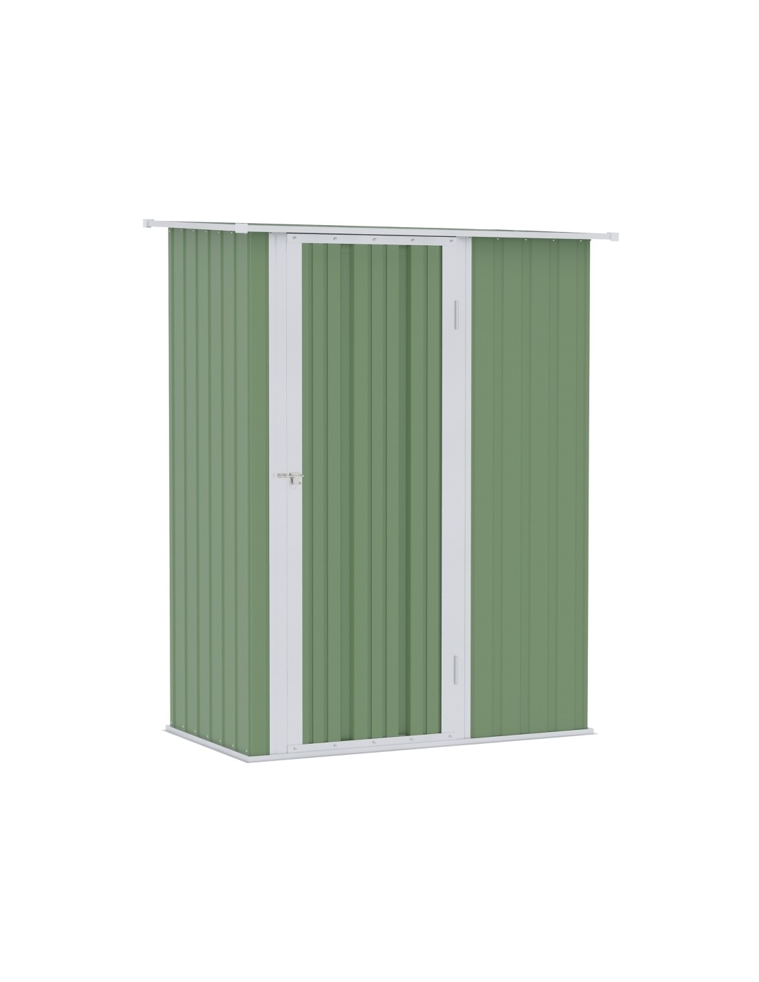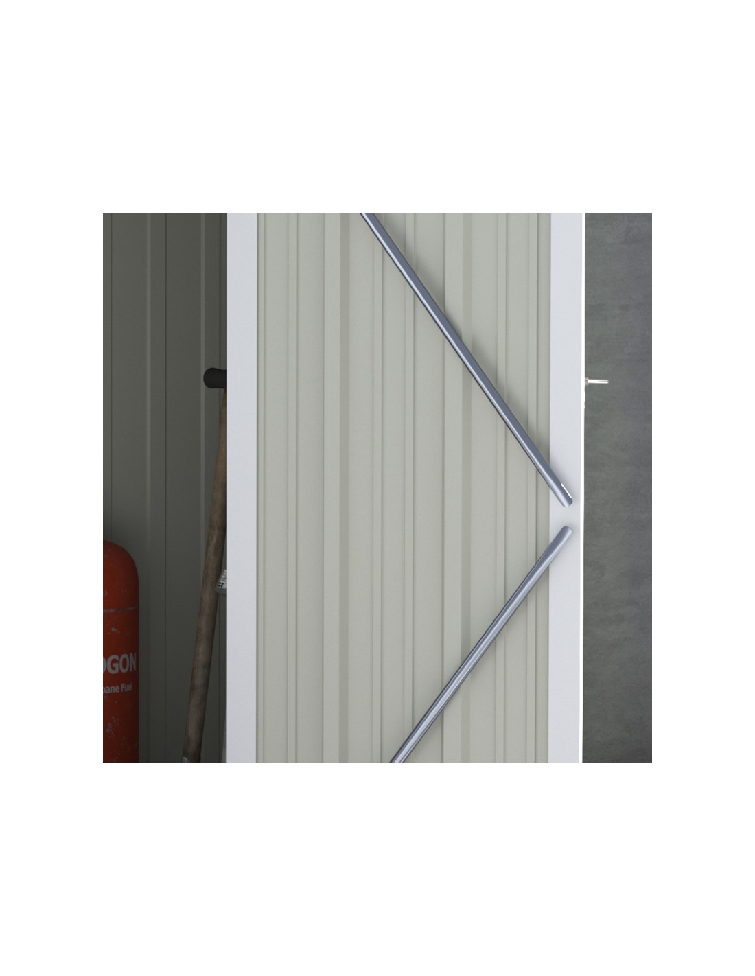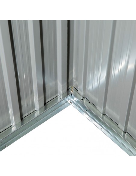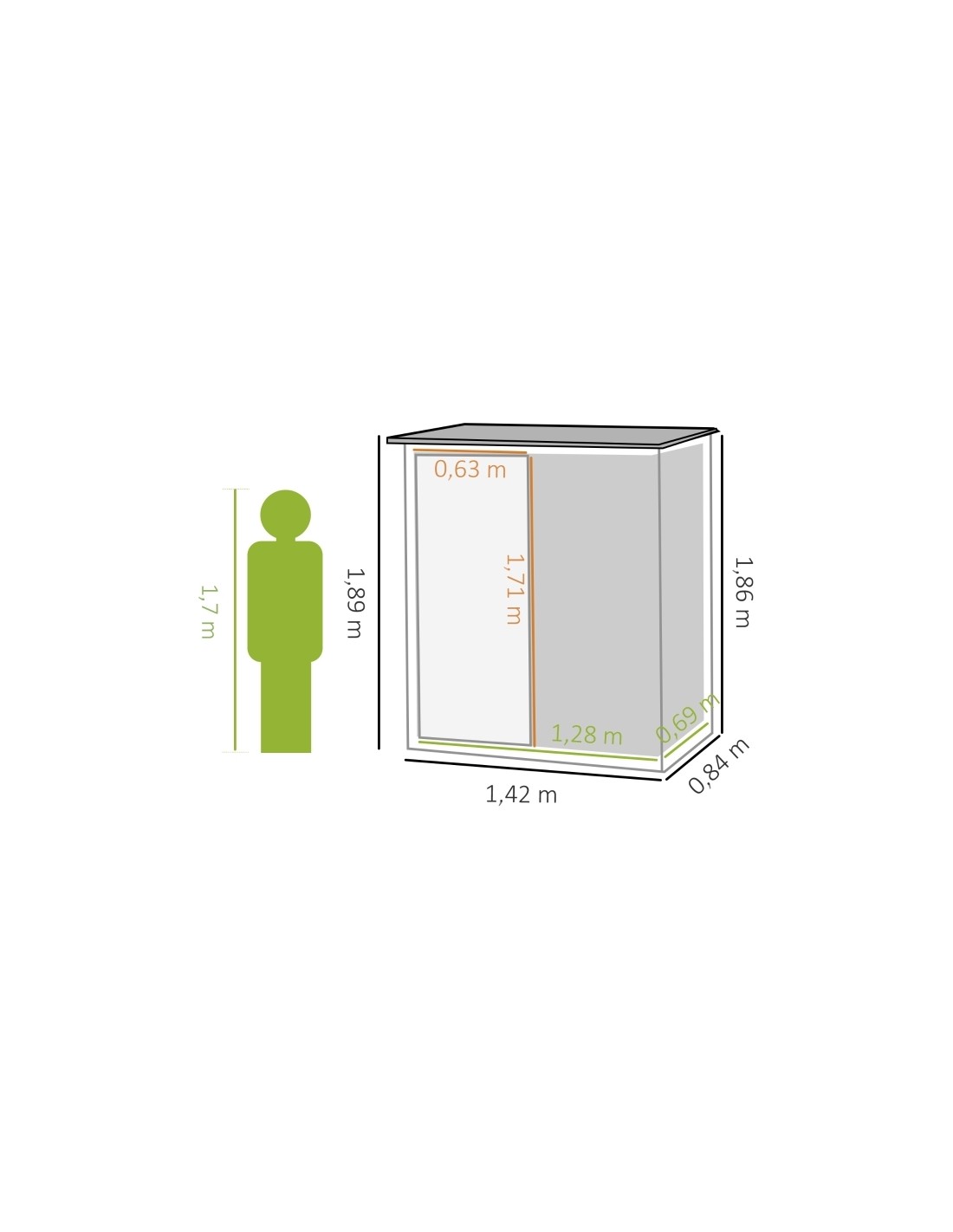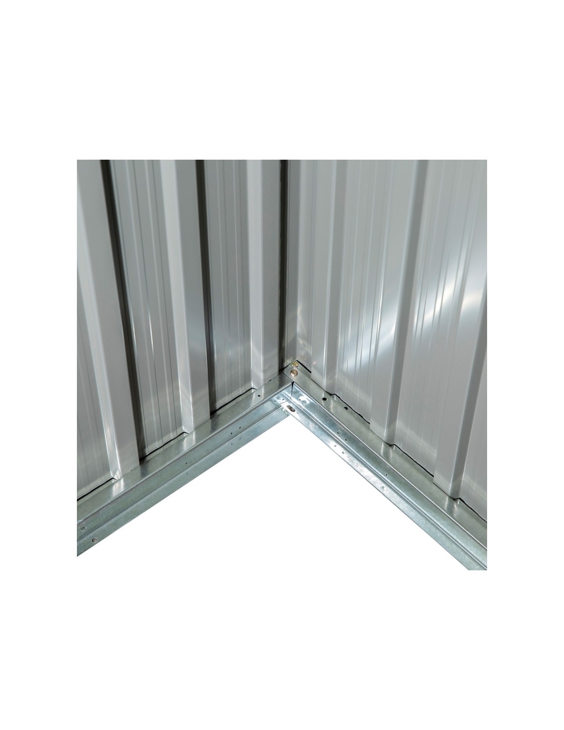 Redskabsskur udført i et design af forzinket stål. Redskabsskuret måler 186 - 189 cm i højden og 142 x 84 cm i bredde og dybde.