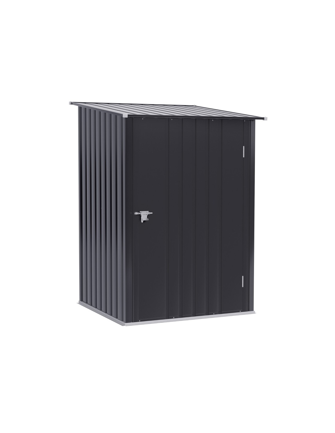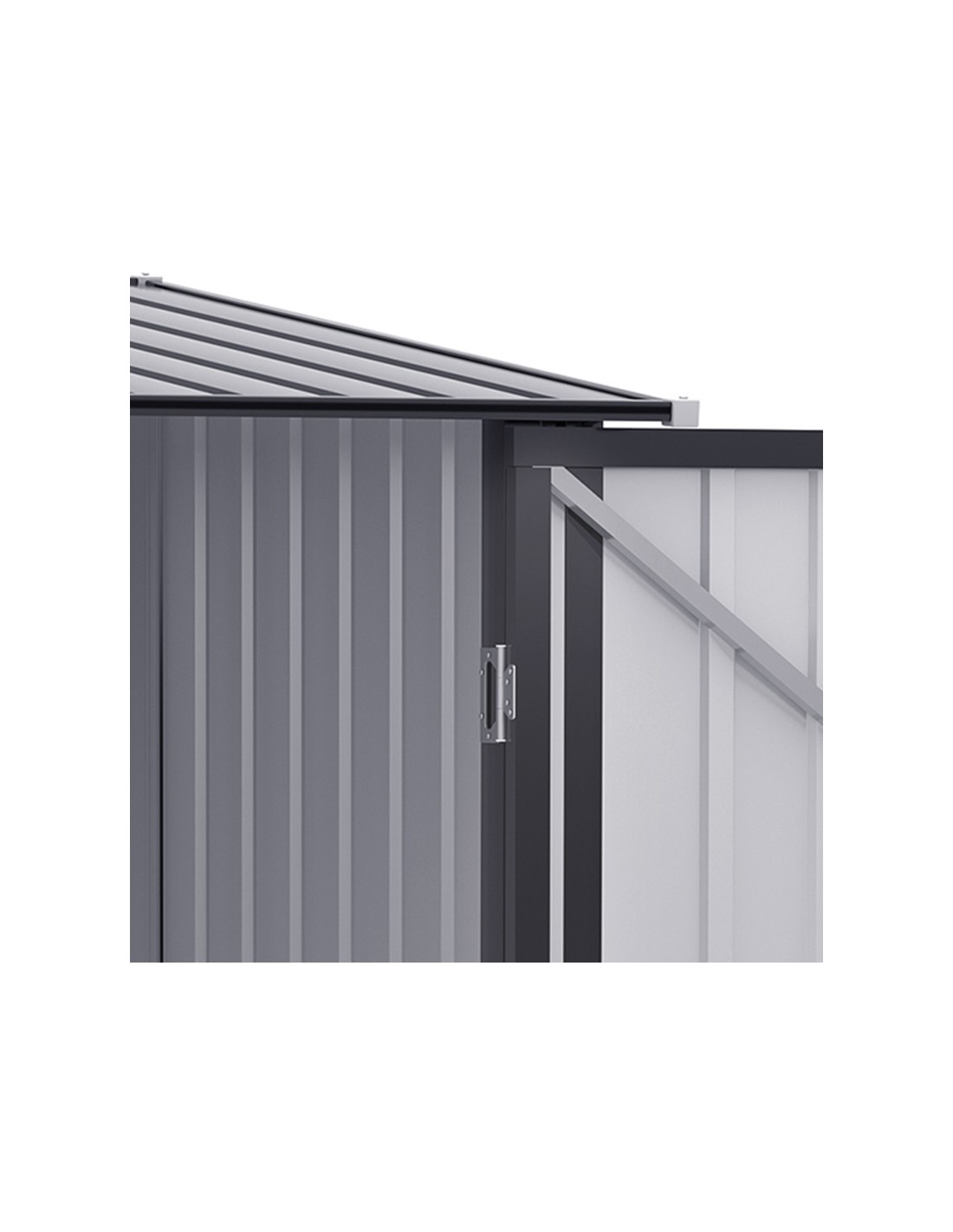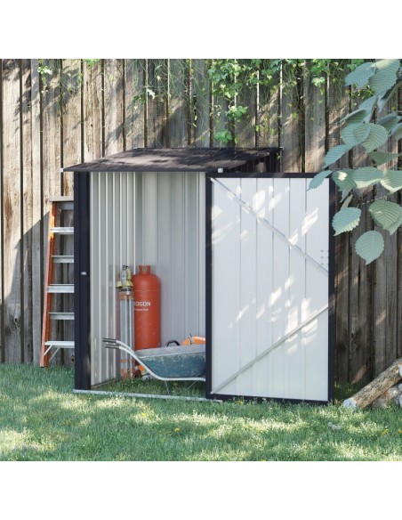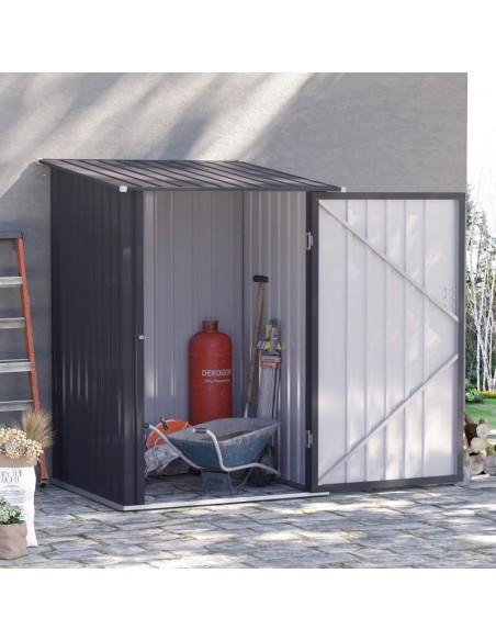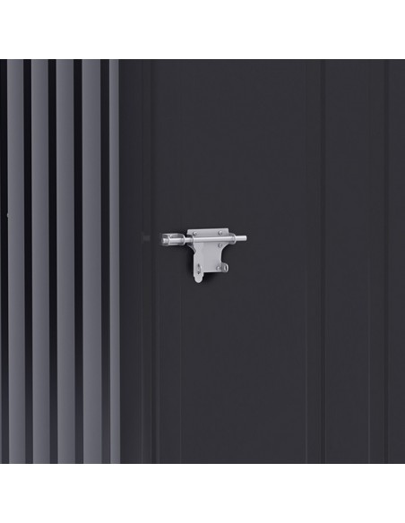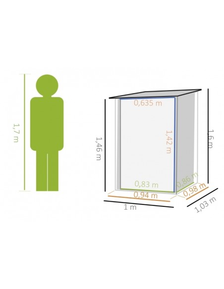 Redskabsskur udført i et design af forzinket stål. Redskabsskuret måler 146 - 160 cm i højden og 100 x 101 cm i bredde og dybde.