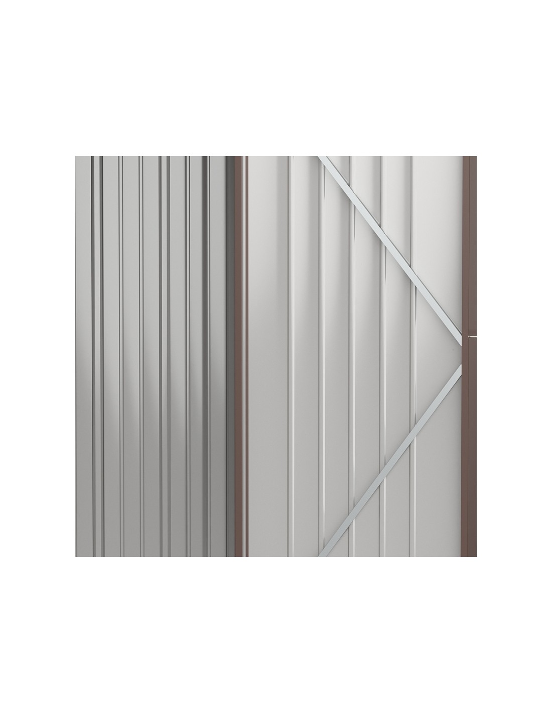 Redskabsskur udført i et design af forzinket stål. Redskabsskuret måler 183 - 196 cm i højden og 161,5 x 94,5 cm i bredde og dybde.