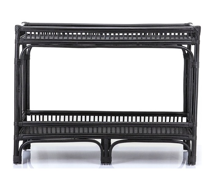 Reol i et rustikt design, fremstillet i sortmalet rattan. Reolen indeholder 2 hylderum og måler 76 cm i højden og 100 cm i bredden.