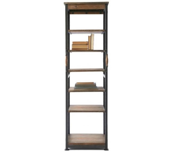 Riviera Maison reol i et industrielt design af genanvendt fyrretræ og jern. Reolen indeholder 7 hylderum og måler 200 cm i højden og 60 cm i bredden.